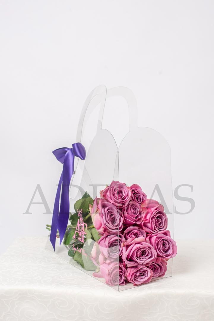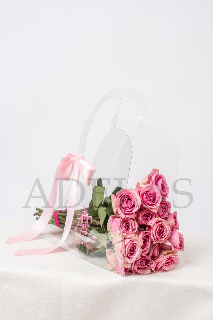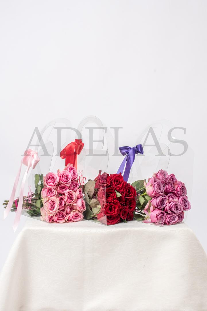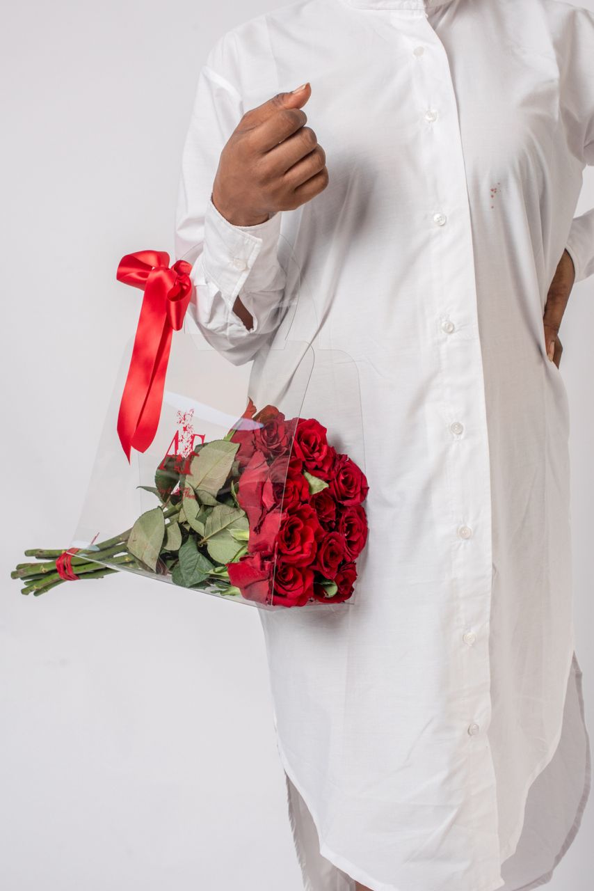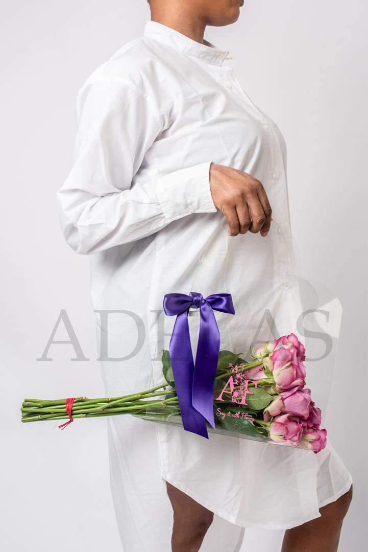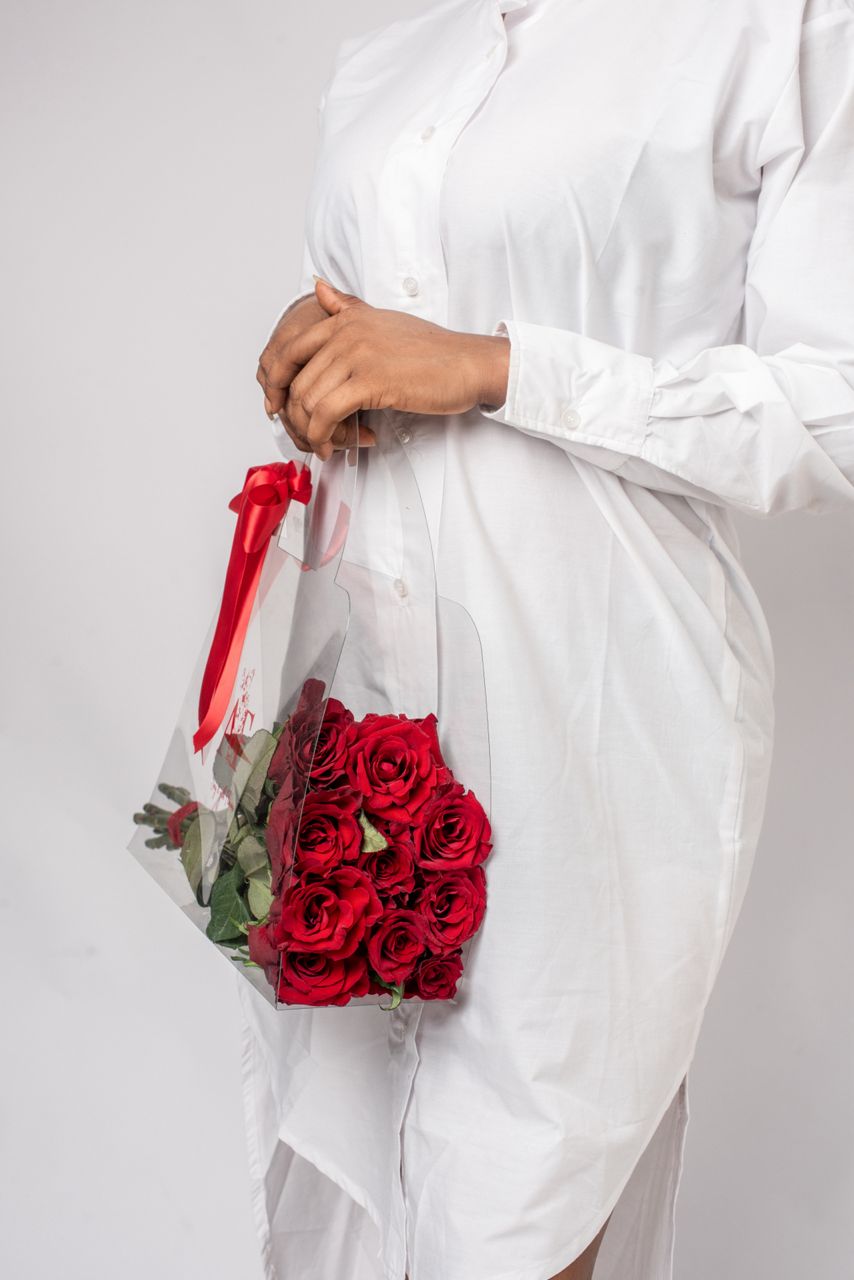 Our Fashion Forward take on roses. Very simple and chic. The clear bag highlights the natural beauty of the rose stems. Ideal for placing in a flower vase.